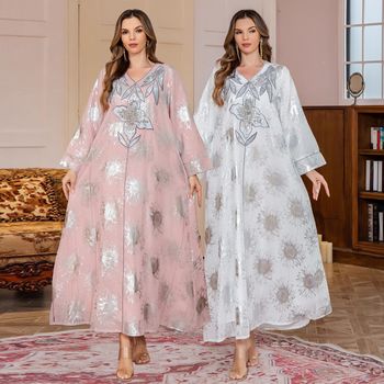 Фабричная поставка Yibaoli, летний мусульманский женский халат в стиле Абайи, элегантный модный длинный кафтан с принтом и блестками