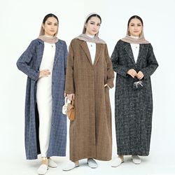 Производитель Yibaoli, индейка Дубай, осенне-зимнее утолщенное скромное платье из Твидового полиэстера, дышащий кардиган, платье Абая