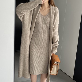 Yibaoli, фабричная поставка, трикотажный Свободный Повседневный комплект из двух предметов, кардиган и платье-комбинация, осенне-зимний костюм в ленивом стиле